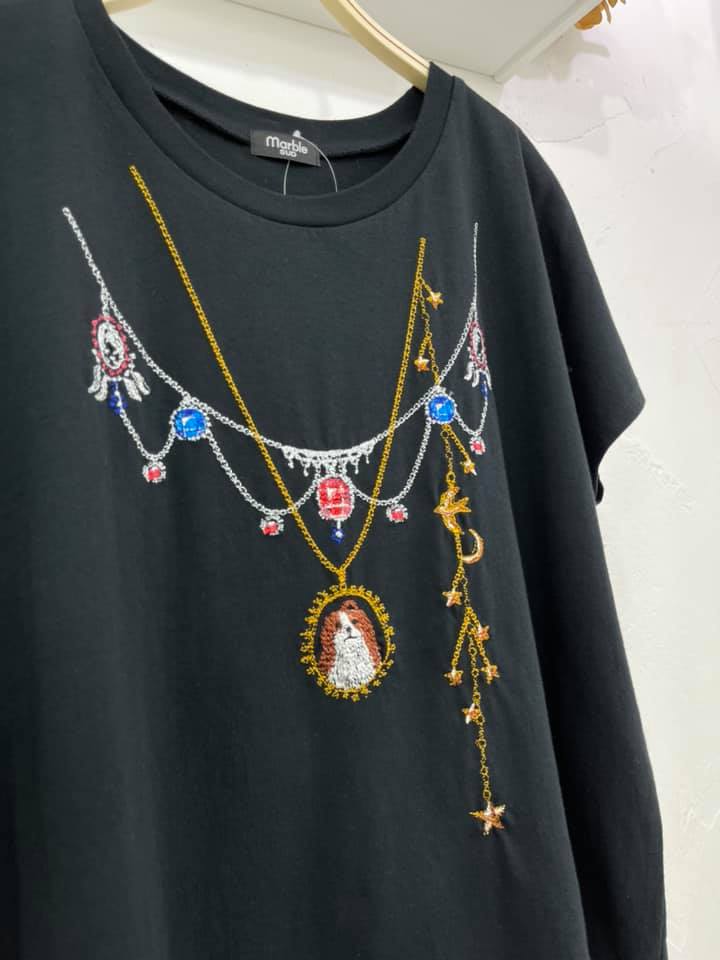marble SUD綴頸鏈刺繡圖案Top - 859866