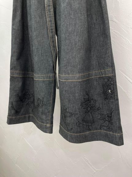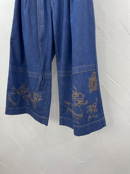 OLLEBOREBLA單線刺繡童話故事人物圖案車明線闊身褲 - 860935