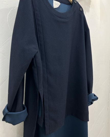 30 THIRTY後幅長身條紋布長袖Top - 863332