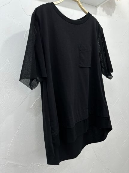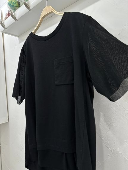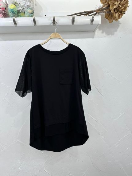 RAPUCALUSON 前胸口袋併紗袖鬆身Top - 865200