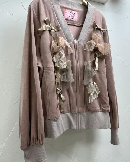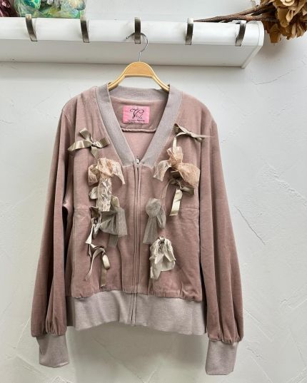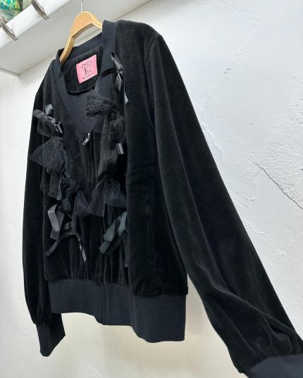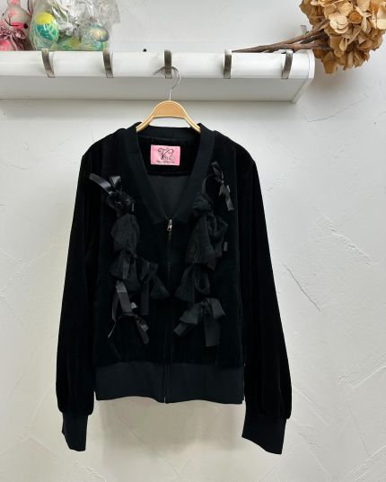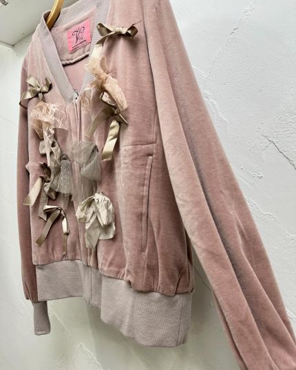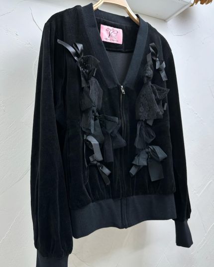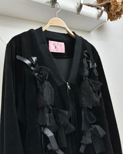 Veerle 絲絨質料綴LaceV領拉鍊長袖外套-867373