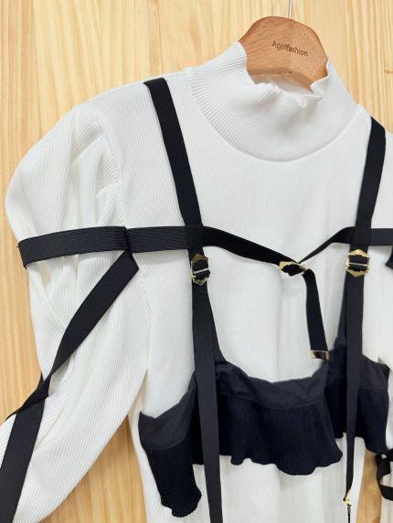 RBTxCO 彈性坑紋企領拼綁帶top-867454