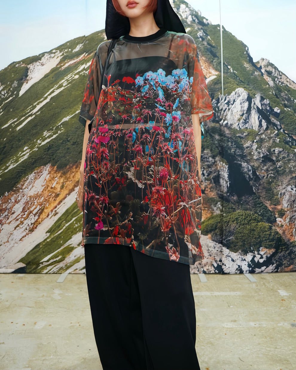 NONTOKYO 花卉印花圖案紗料長身top-867956