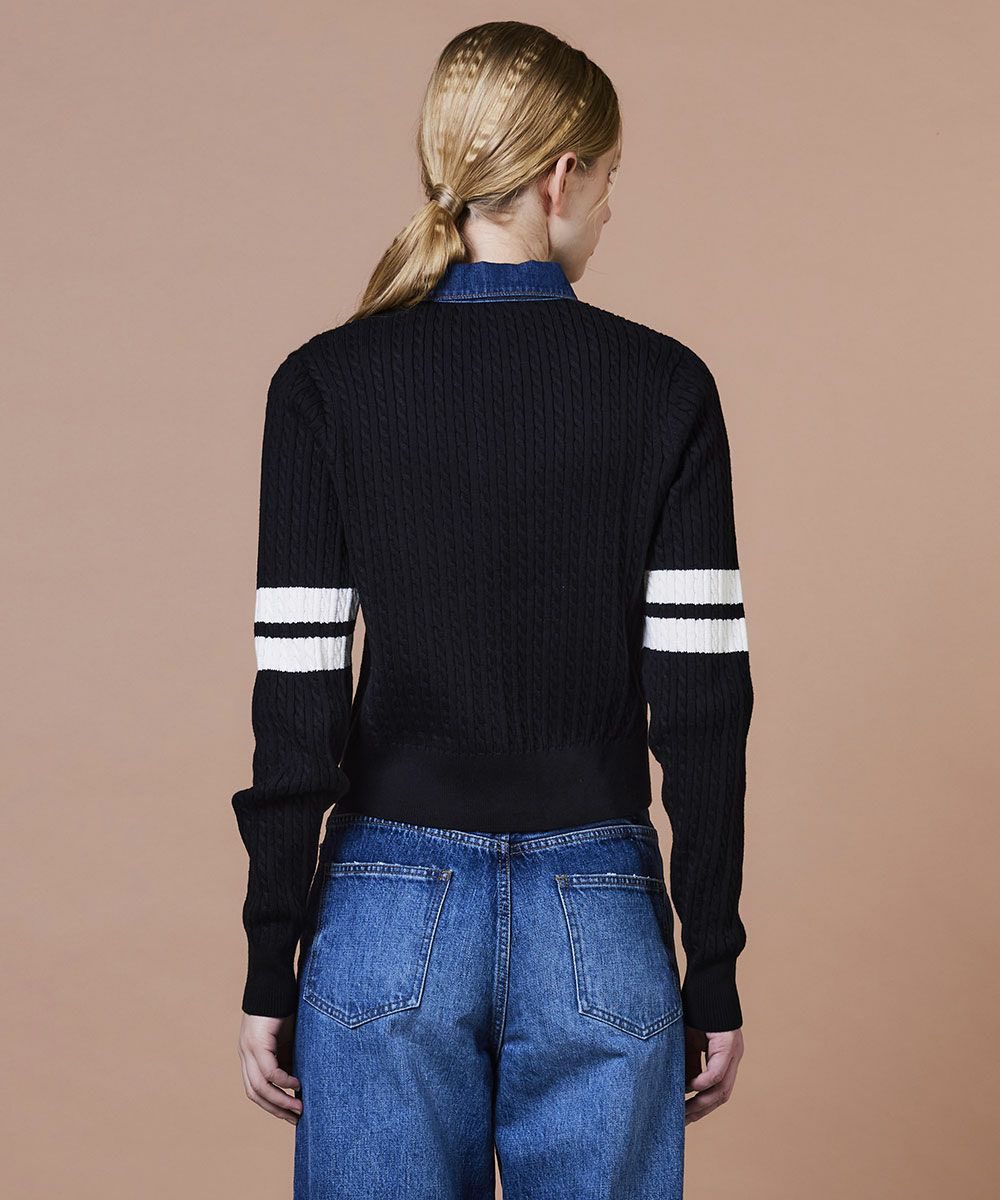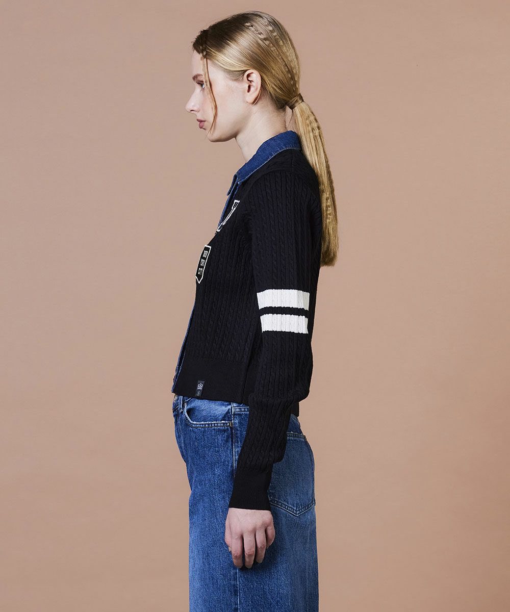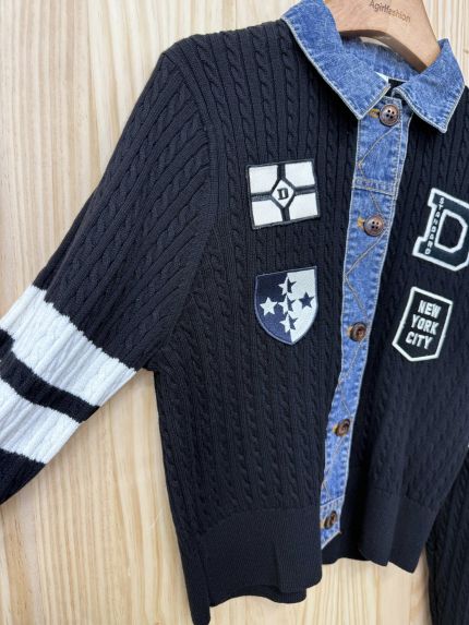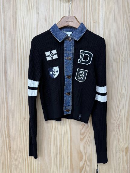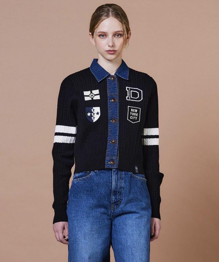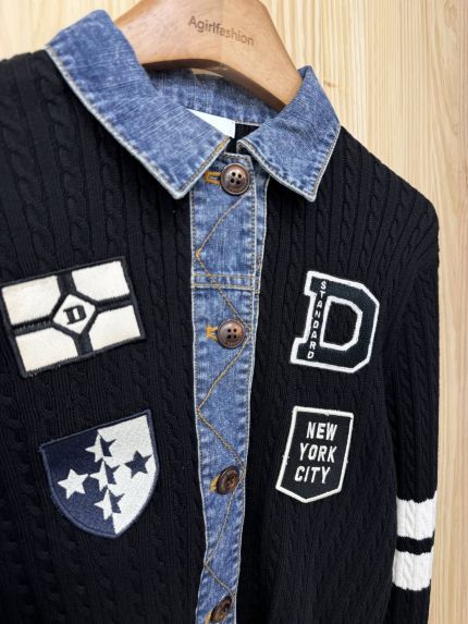 Double Standard Clothing 針織拼牛仔刺繡章外套-867975