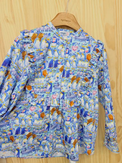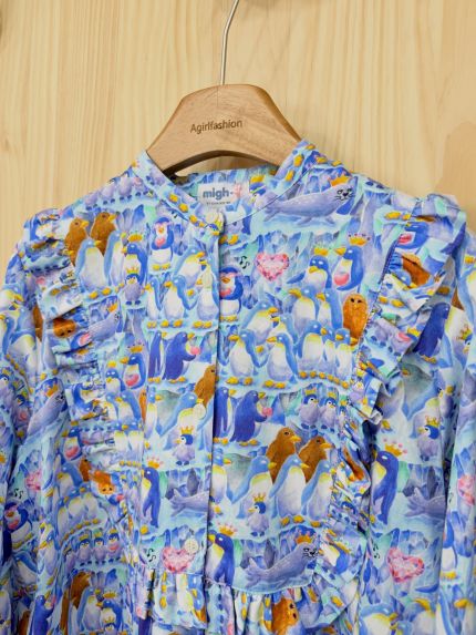 Migh-T 企鵝印花印花圖案ruffle邊恤衫Top -867990