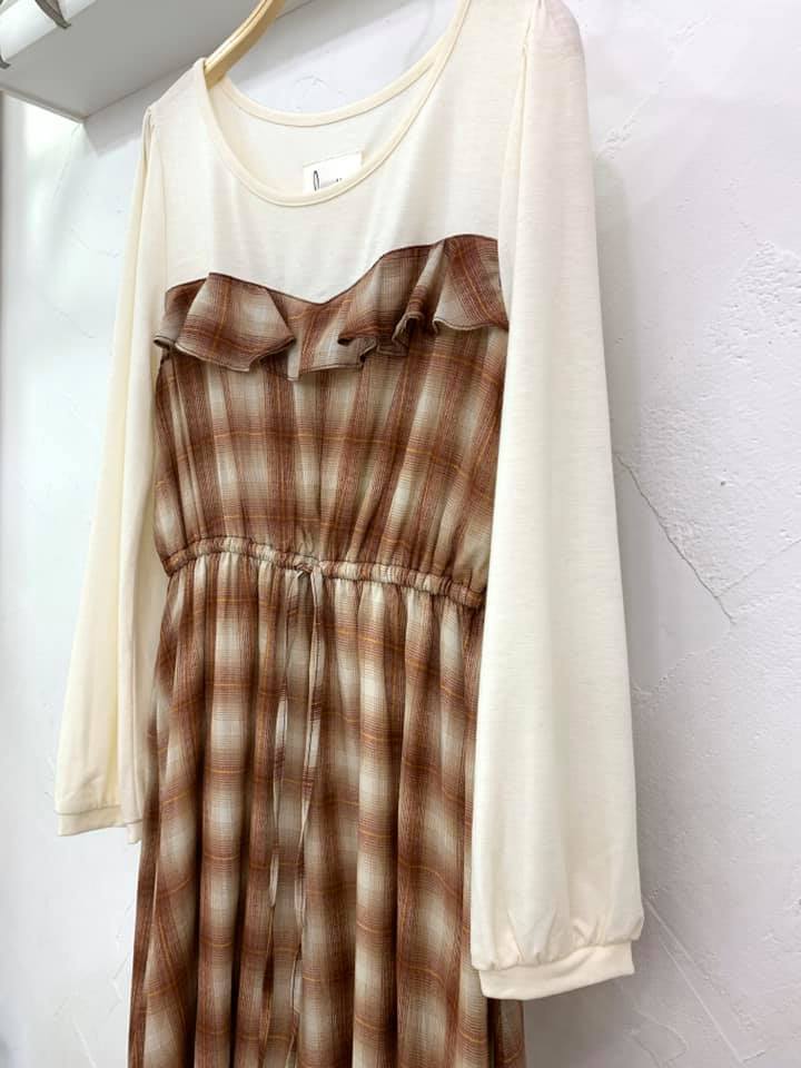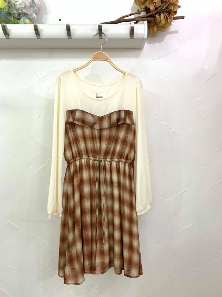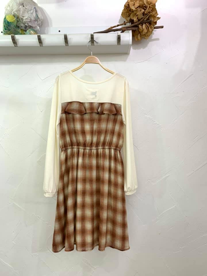 首頁 > 其他日本品牌 / Others > Smaddy 併格仔布長袖Onepiece - 825452