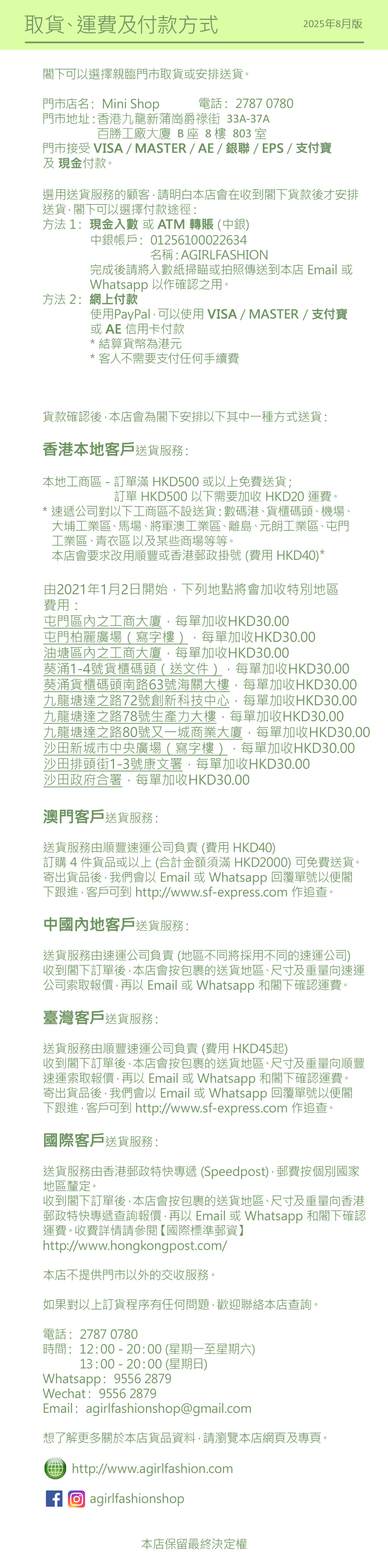運費及付款方式